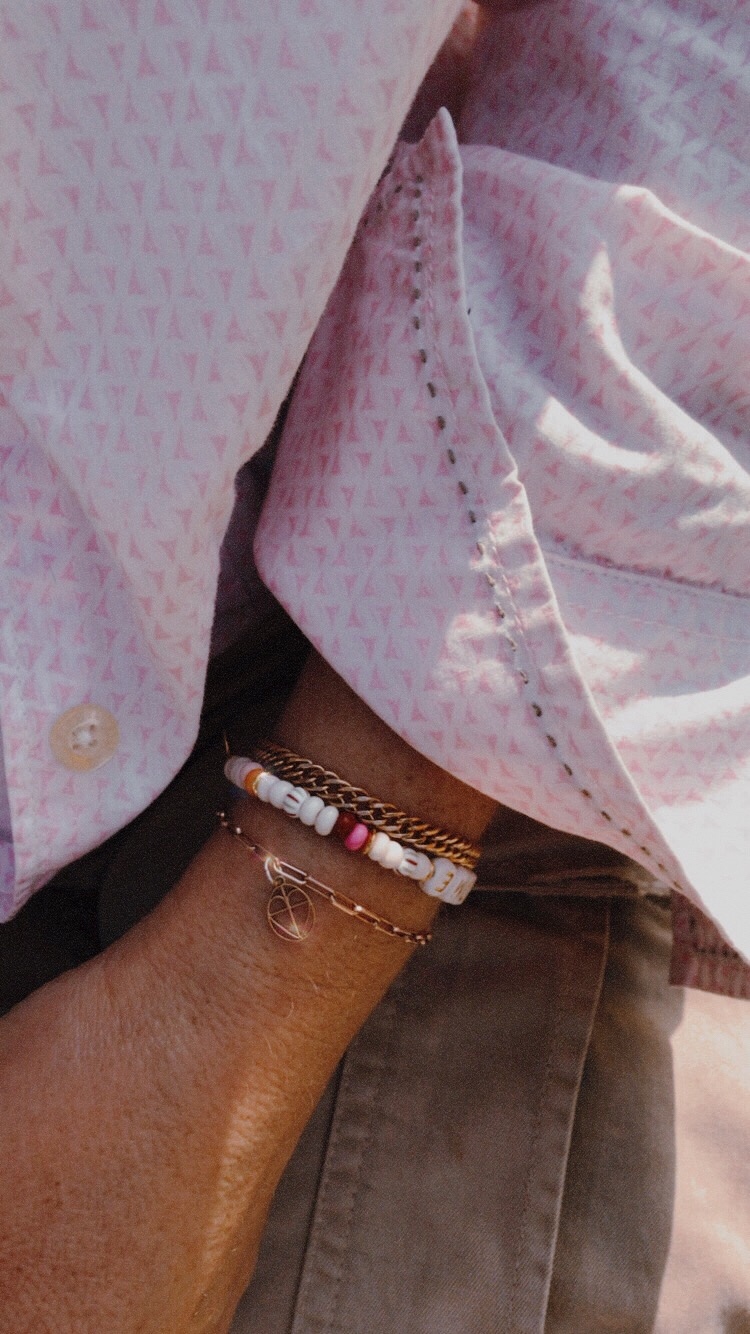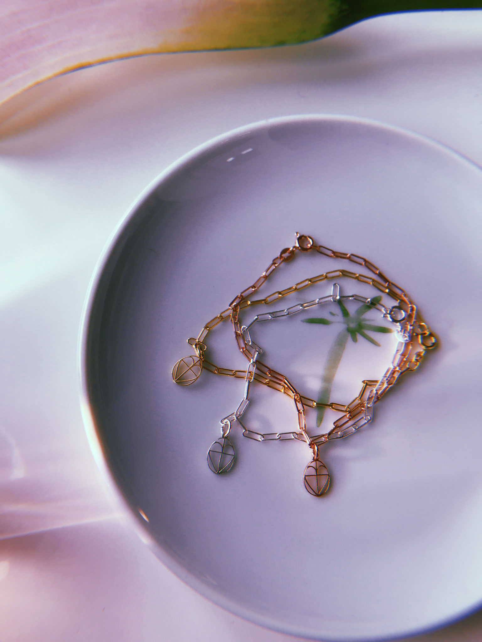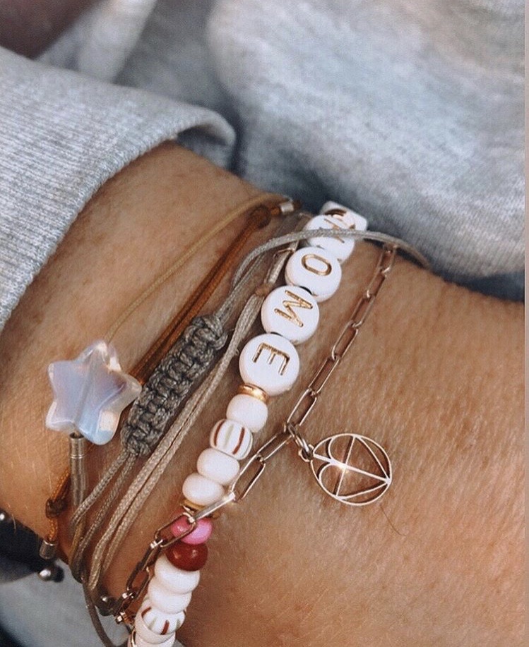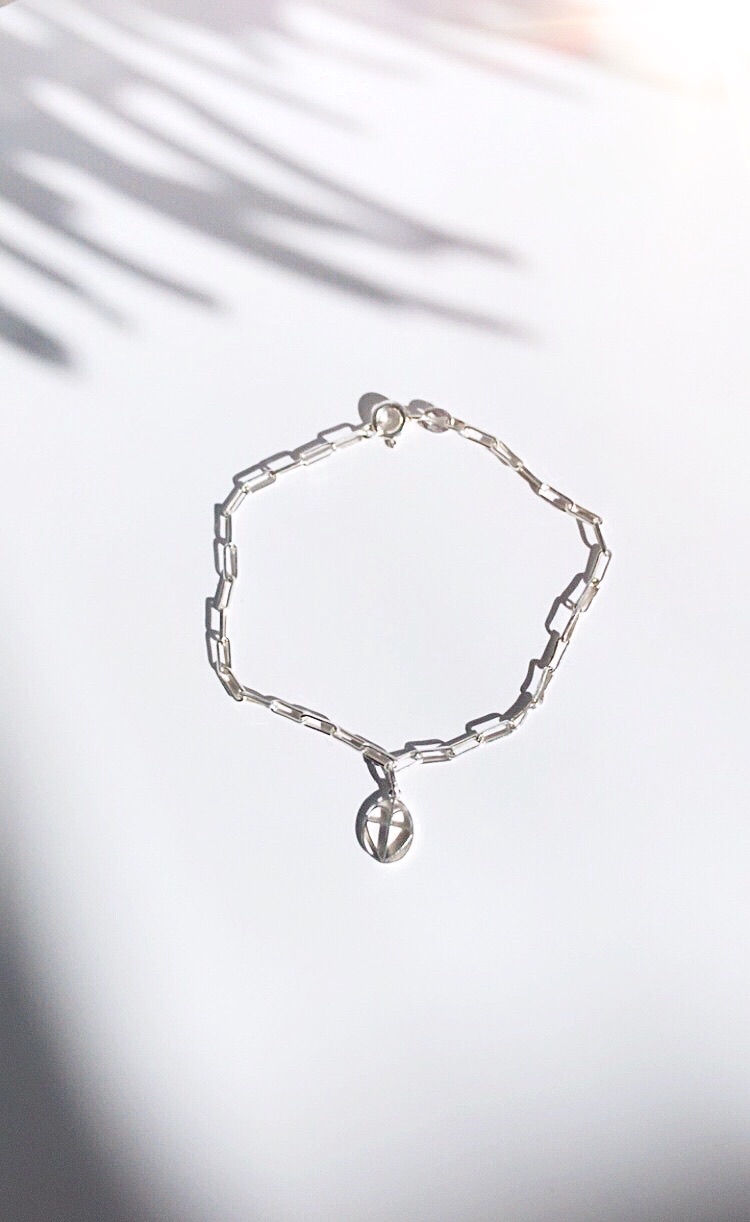 Der kleine Symbol Anhänger bewegt sich leicht spielerisch an dem schönen Gliederarmband.