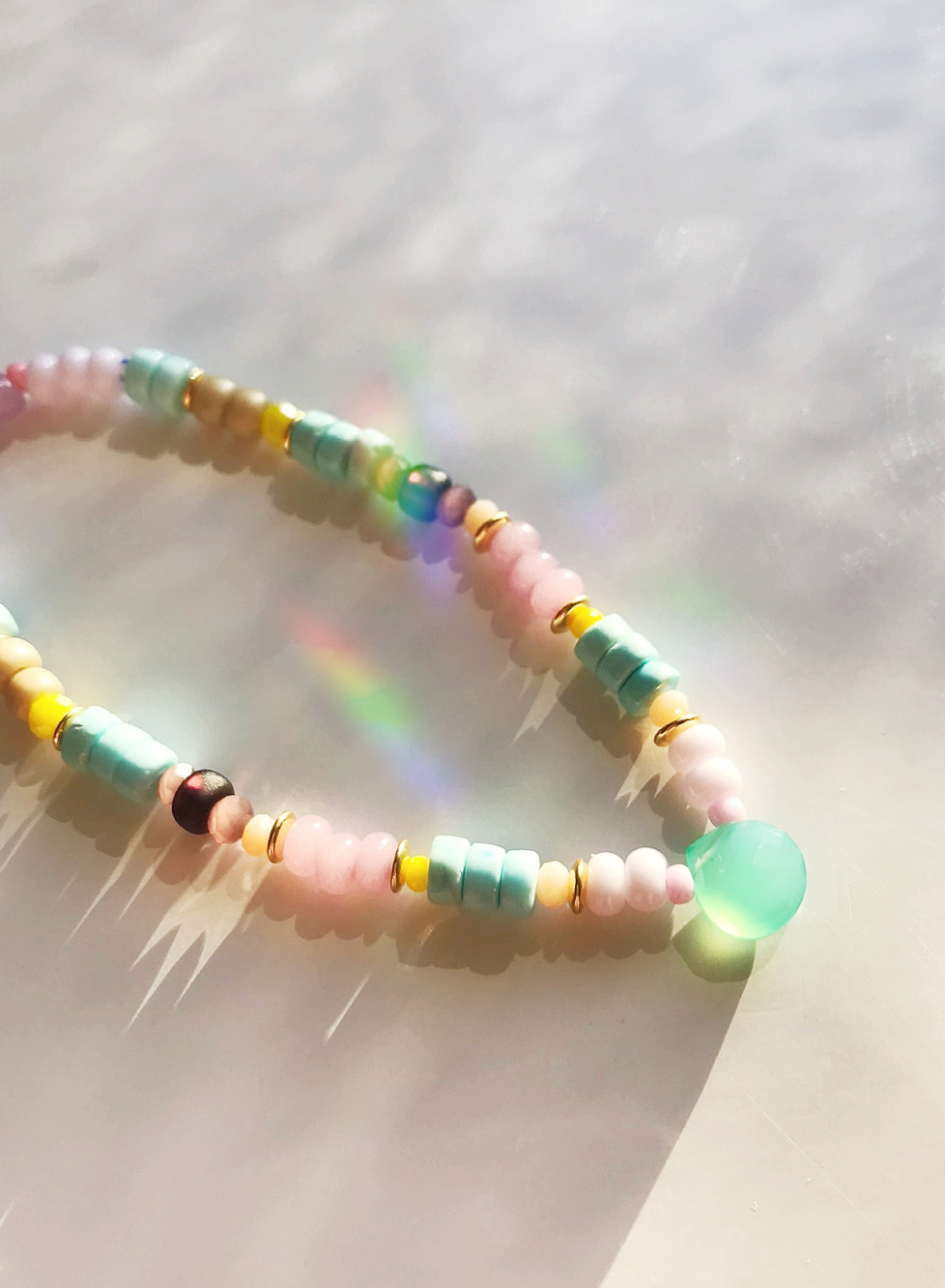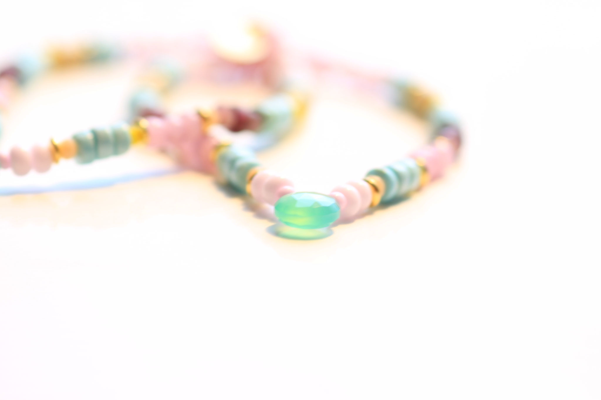 Wir haben in diesem Modell Steine (Türkise),  Glasperlen matt und glänzend sowie Sterling Silber Elemente in 24 Karat vergoldet, mit Liebe zum Farbspektakel und Handwerk, gearbeitet.