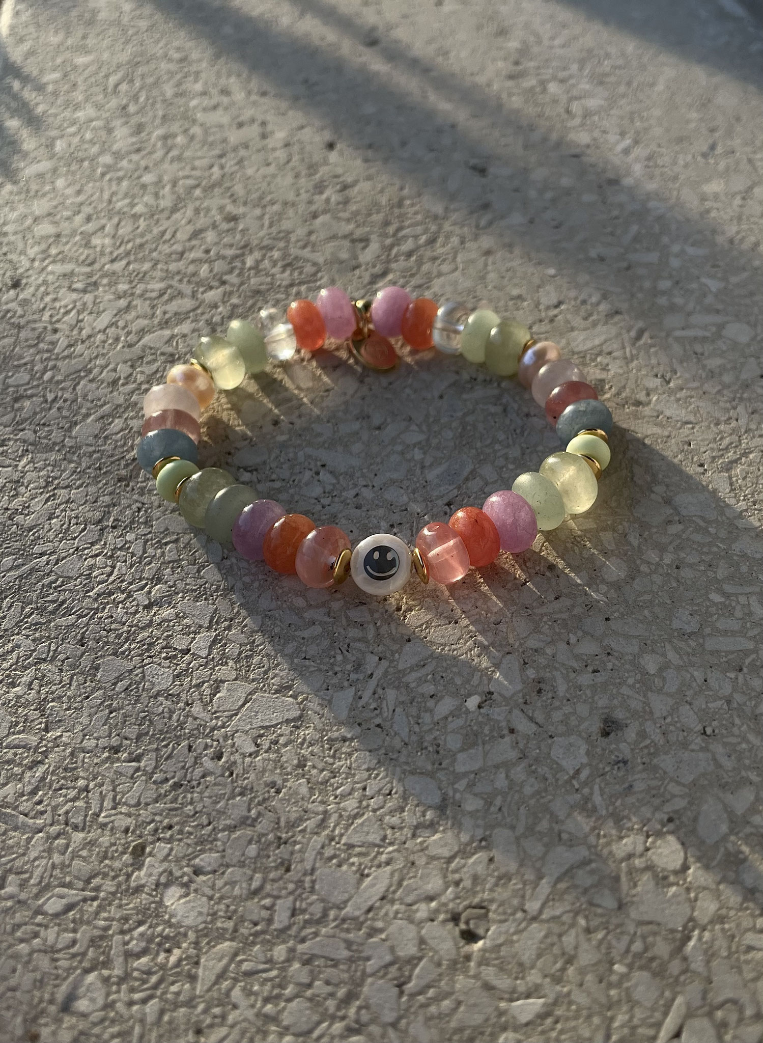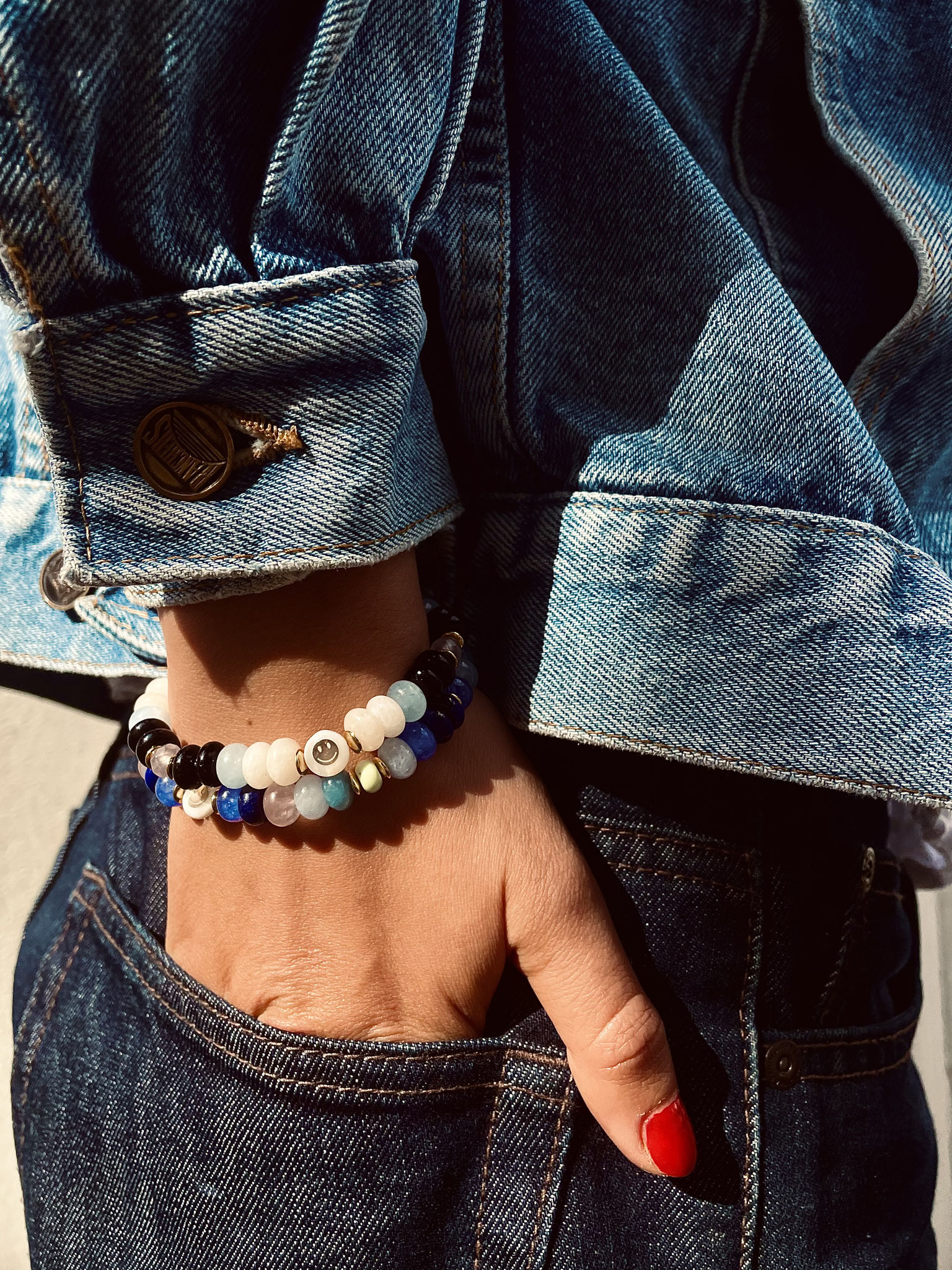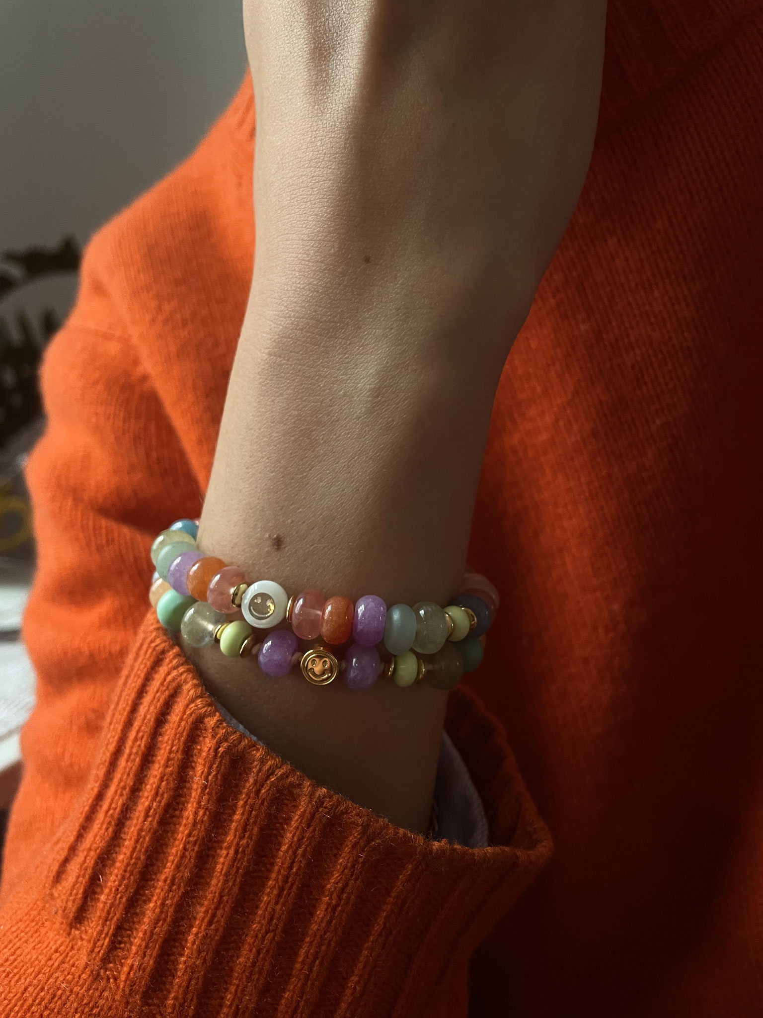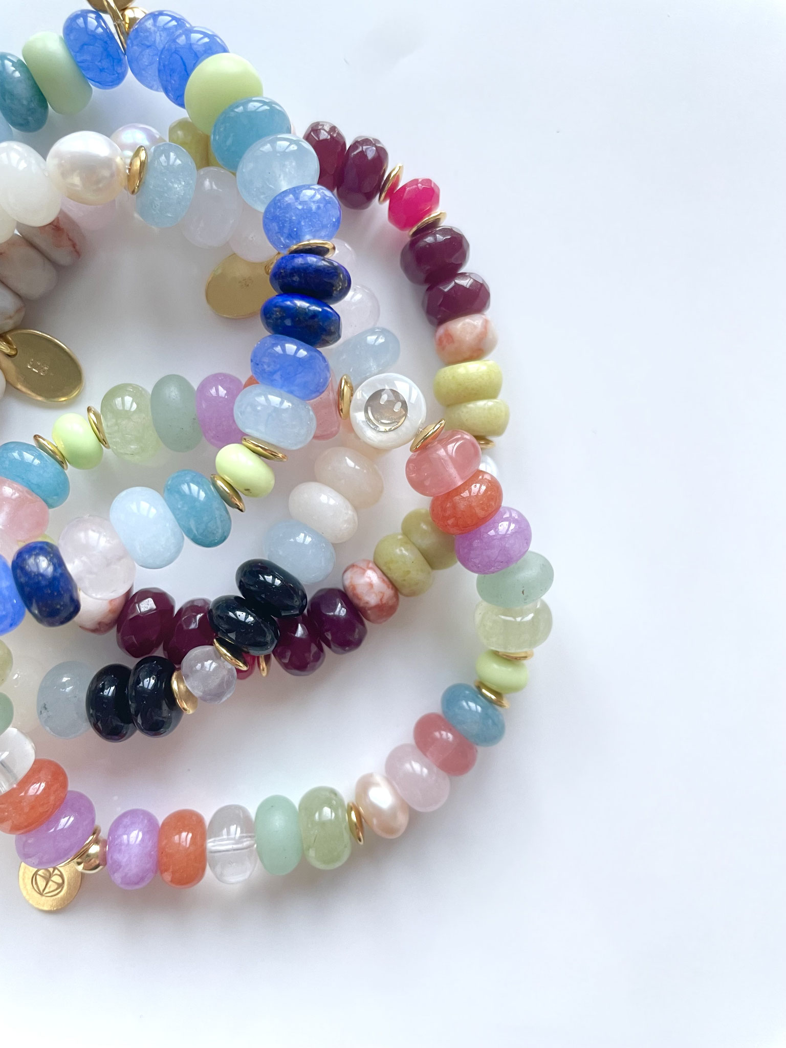 Unsere NOBLE SMILE Collection ist ein wunderschönes Armband Modell, das wir mit Edelstein-Rondellen in AAA Qualität und einem Zwischenstück SMILEY aus Perlmutt mit einem goldenen eingelassenen Smiley gefertigt haben. Die bestechenden Farben und ihre Ausstrahlung lassen keine Wünsche übrig!